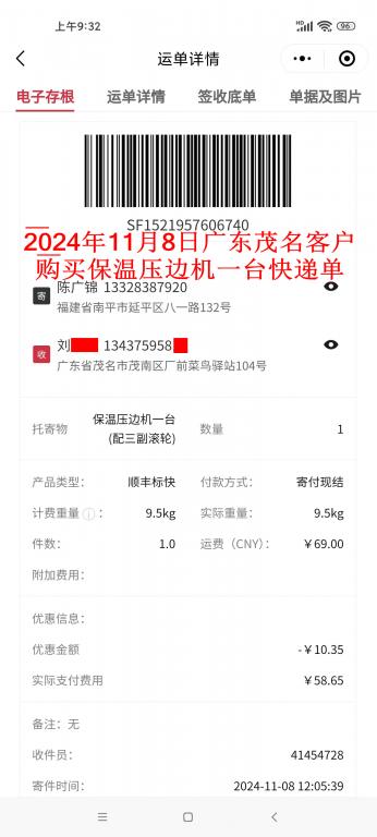 第二次購(gòu)買(mǎi)11月4日無(wú)錫客戶(hù)快遞單