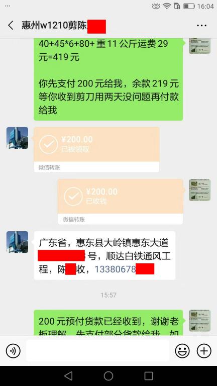 11月28日惠州客戶轉(zhuǎn)賬200元至微信賬戶
